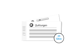 Bei uns erhalten Sie Blöcke für Quittungen in zwei Formaten: Entscheiden Sie sich zwischen den gängigen Größen DIN A6 sowie DIN A7, die wir Ihnen beide sowohl im Hochformat als auch im Querformat anbieten. Darüber hinaus erhalten Sie die Blöcke wahlweise mit 25, 50 oder 100 Sätzen. Auch hinsichtlich der Durchschläge pro Satz bieten wir Ihnen mehrere Optionen – hier stehen Ihnen ein bis fünf Durchschläge in verschiedenen Farben zur Verfügung.